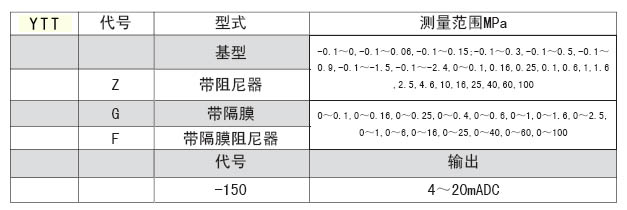 YTT-150型差動遠傳壓力表是二線制本質(zhì)安全型防爆儀表,用于測量對銅及其銅合金不起腐蝕作用的液體、氣體和蒸汽的壓力。儀表帶上阻尼器后,可測量脈動、沖擊、突然卸荷介質(zhì)的壓力。帶上隔膜部分后,可測量大粘度、有強腐蝕性介質(zhì)的壓力。本儀表除就地進行壓力指示外,還連續(xù)輸出與被測壓力信號成線性的4~20mA直流信號??梢耘cDDZ-Ⅲ電動單元組合儀表中顯示、記錄、調(diào)節(jié)儀表聯(lián)用,組成自動記錄、調(diào)節(jié)、控制等系統(tǒng)。適用于石油化工、冶金、電站、輕工業(yè)等部分使用。