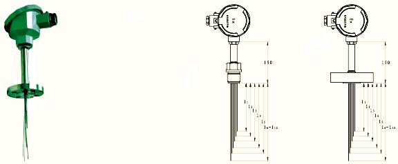 ☆例:多點熱電偶, K 型, 3點。 L級,固定螺紋 M27X2,L1 = 1200,L2 =1500,L3 =2000, WRN-220D