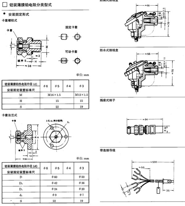 安裝固定裝置標準尺 | 鎧裝薄膜鉑熱電阻外徑(d) | |||