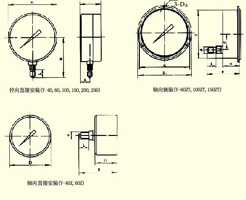 普通壓力表適用于測量無(wú)爆炸危險、不結晶、不凝固及對鋼、銅合金不起腐蝕作用的液體、蒸汽和氣體等介質(zhì)的壓力。 YC-60、YC-100、YC-150為船用壓力表