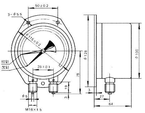 雙針壓力表主要適用于機車(chē)車(chē)輛上用來(lái)測量液壓系統或儲氣缸內的壓力;亦可用于對銅合金及錫鉛合金釬焊料無(wú)腐蝕性、非結晶和凝固的各種介質(zhì)的壓力測量。儀表可同時(shí)測量?jì)蓚€(gè)相同可不相同(兩者之差一般應不大于標度范圍上限值的1/3)的壓力。