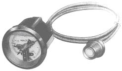 儀表的工作原理是基于測量系統中的彈簧管在被測介質(zhì)的壓力作用下,迫使彈簧管之末端產(chǎn)生相應的彈性變形——位移,借助拉桿經(jīng)齒輪傳動(dòng)機構的傳動(dòng)并予放大,由固定于齒輪軸上的指示指針(連同觸頭)逐將被測值在度盤(pán)上指示出來(lái)。與此同時(shí),當其與設定指針上的觸頭(上限或下限)相接觸(動(dòng)斷或動(dòng)合)的瞬時(shí),致使控制系統中的電路得以斷開(kāi)或接通,以達到自動(dòng)控制和發(fā)信報警的目的。